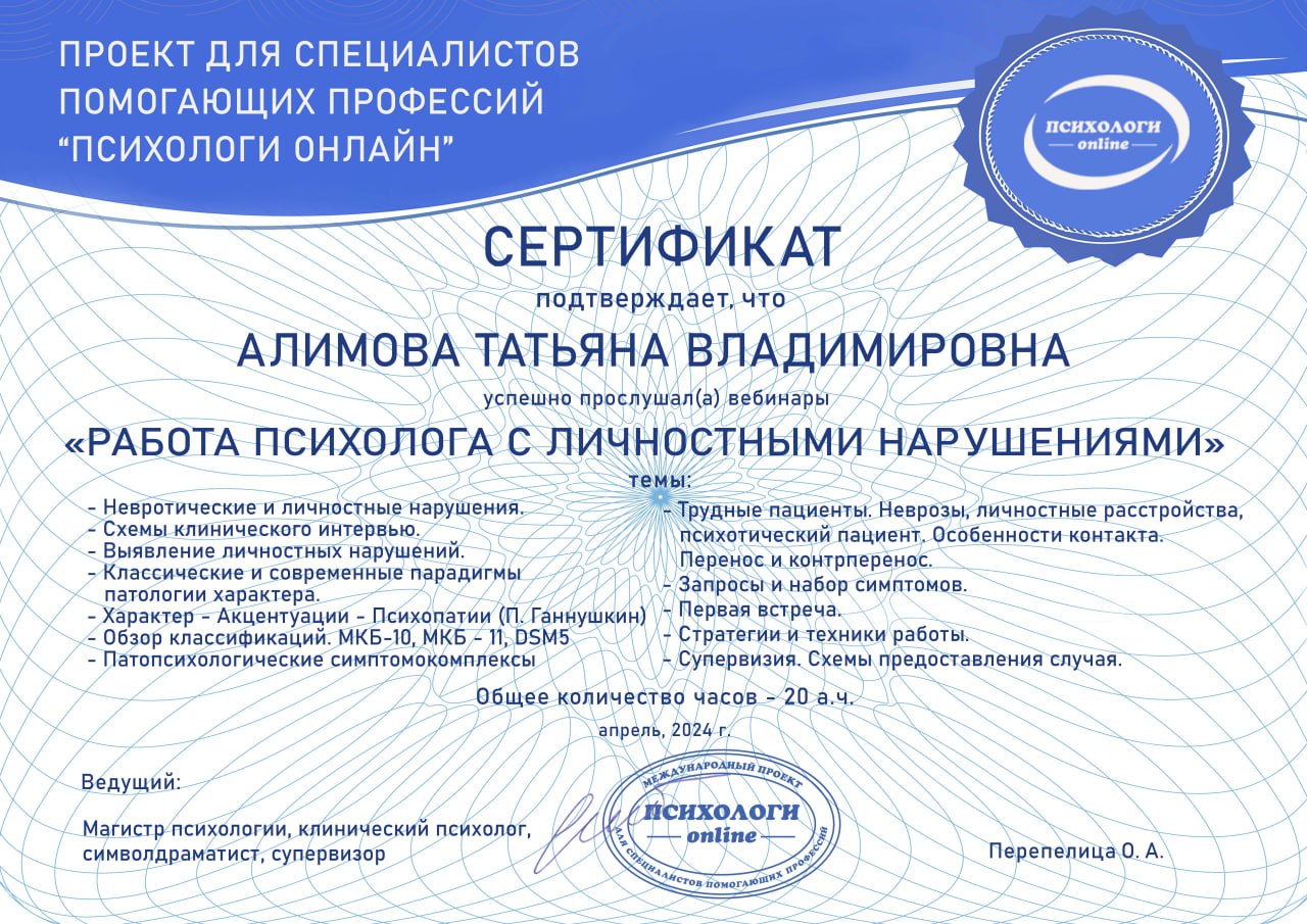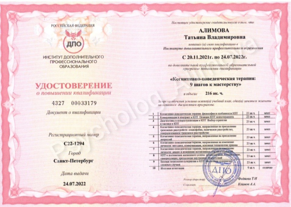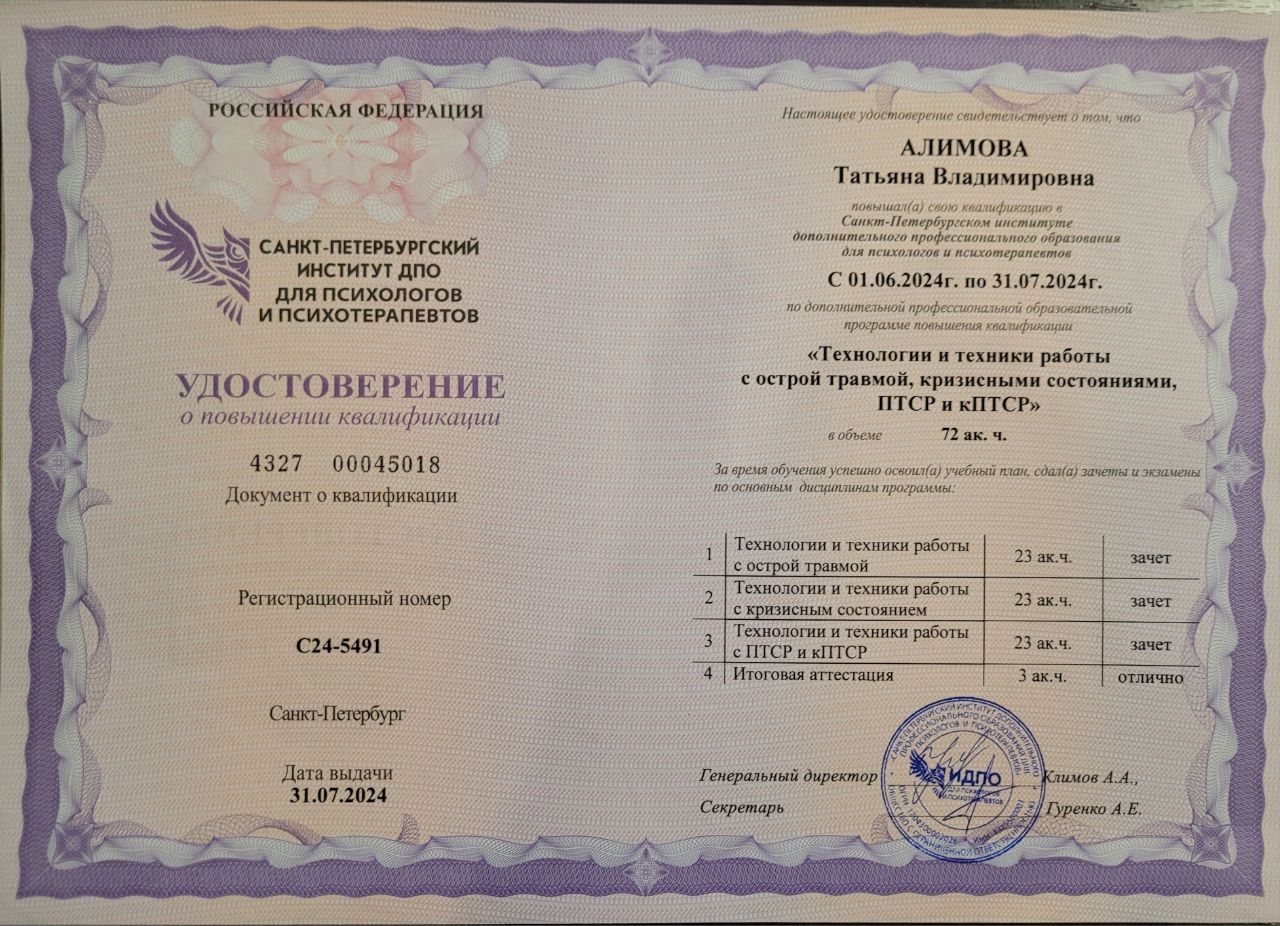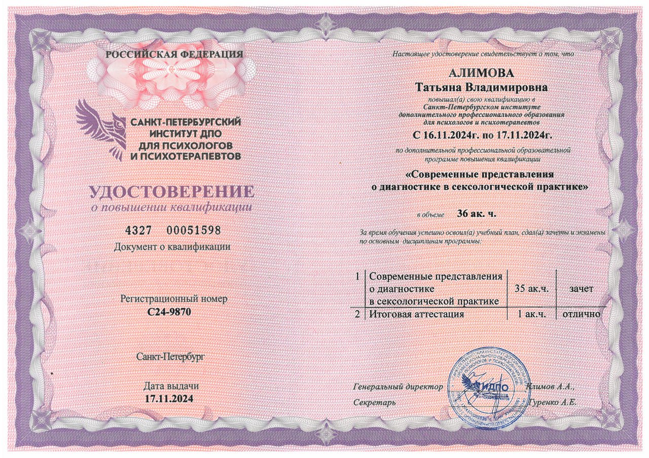 Здравствуйте, меня зовут Татьяна Алимова, я клинический психолог, сексолог Когда я только начинала работать клиническим психологом, ко мне приходили с самыми разными запросами: тревога, депрессия, кризисы в отношениях. Но вскоре я заметила удивительную закономерность - примерно половина клиентов так или иначе сталкивались с: • Невысказанными вопросами о своей сексуальности • Болезненными стереотипами, усвоенными с детства • Конфликтами в паре на почве интимной жизни • Последствиями травм, мешающими близости Тогда я поняла: люди готовы обсуждать с психологом что угодно - кроме этого. Хотя именно здесь часто кроются корни проблем. Сейчас я помогаю: ✓ Разбираться с сексуальными дисфункциями (отсутствие желания, боли, проблемы с возбуждением) ✓ Восстанавливать доверие и взаимопонимание в парах ✓ Преодолевать последствия травм и токсичного опыта ✓ Принимать свою сексуальность без стыда и страха Моя позиция: Нет "нормальных" и "ненормальных" желаний - есть ваша уникальная история. Мы будем работать не только с симптомами, но и с причинами. Если вы: Чувствуете, что "что-то не так", но боитесь об этом говорить Устали от непонимания себя Беспокоитесь из-за неудач в постели У вас нет желания заниматься сексом Ваша вторая половина предъявляет вам претензии по поводу секса Записывайтесь на консультацию мы обязательно найдем выход.