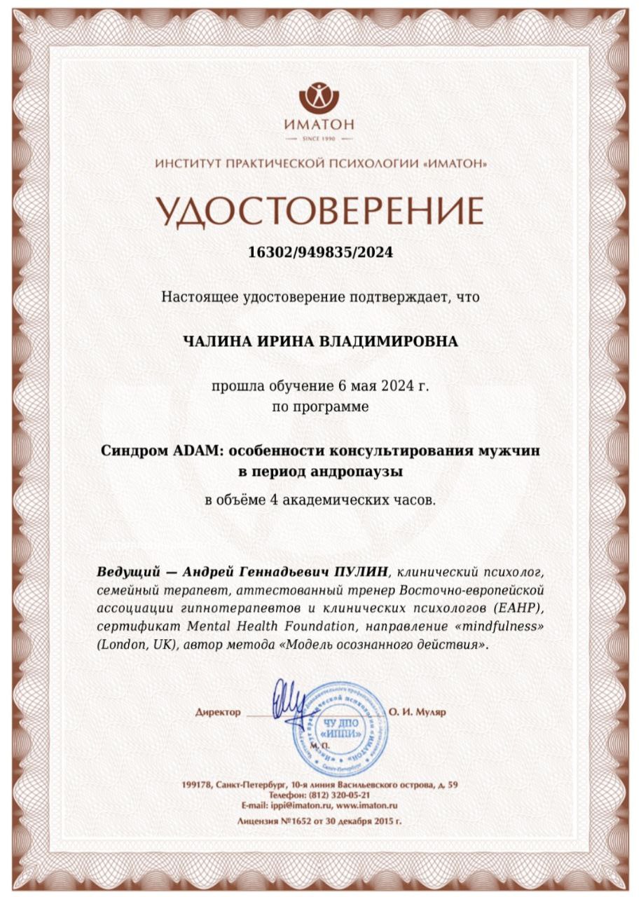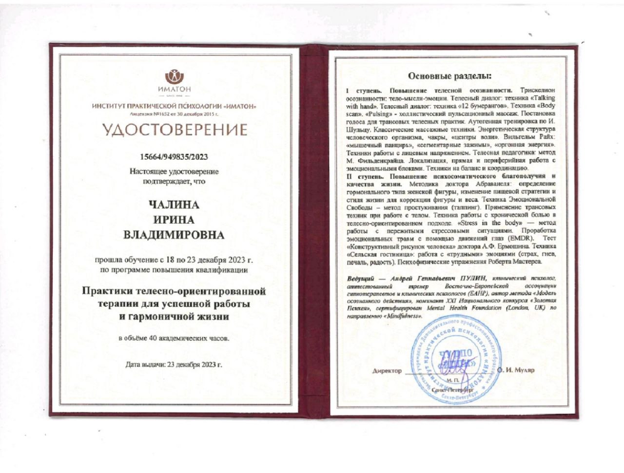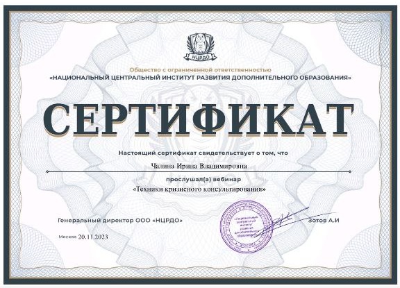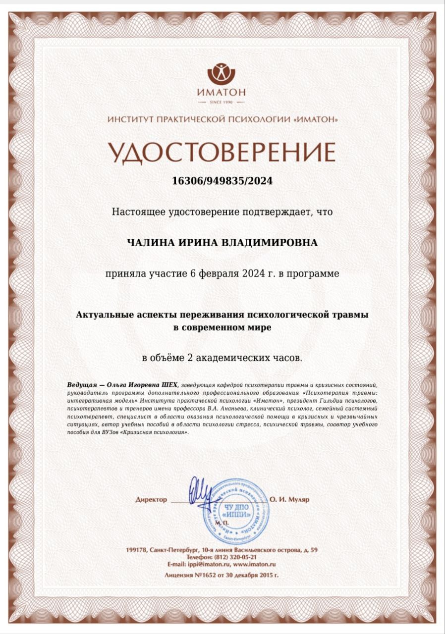 Моё направление "Кризисная психология", "Телесно-Ориентированный Подход" Помощь при личных кризисах, потере близких, разводах и других тяжелых жизненных событиях. Поддержка в периоды сильного стресса, тревоги и депрессии. Использование проверенных методов краткосрочной терапии, эмоциональной стабилизации и холистического массажа. А так же работаю с темами: -Проживание " трудных" эмоций," и пережитый стресс -Тревожность, усталость, апатия, выгорание -Панические атаки -Непринятие себя, низкая самооценка -Детско-родительские отношения -Конфликты в отношениях -Потеря ориентира в жизни. Кризисная помощь направлена на то, чтобы помочь понять свои чувства и реакции, найти пути выхода из сложной ситуации и восстановить психологическое равновесие. это означает: - Получение профессиональной поддержки в трудные периоды. - Осознание своих эмоций и переживаний. - Поиск эффективных способов справляться с кризисными ситуациями. - Разработку стратегий преодоления трудностей. - Восстановление уверенности в себе и психологического комфорта. - Предотвращение возможных негативных последствий для здоровья и жизни. В целом, кризисная психологическая помощь помогает почувствовать поддержку, обрести внутренние ресурсы для преодоления кризиса и вернуться к нормальной жизни с новым пониманием себя и ситуации. Телесно-ориентированный подход, является психотерапевтическим методом, который уделяет особое внимание физическому телу и его реакциям. Этот подход направлен на восстановление связи между умом и телом, на осознание и использование того, как тело отражает наши эмоции, мысли и опыты. Важным аспектом телесно-ориентированного подхода является развитие осознанности и присутствия в моменте, что поможет вам научиться слушать свое тело и реагировать на его потребности. Этот подход также способствует развитию эмоциональной регуляции и улучшению психического здоровья. Так же я научу вас техникам самопомощи и саморегуляции в трудным моментах вашей жизни.